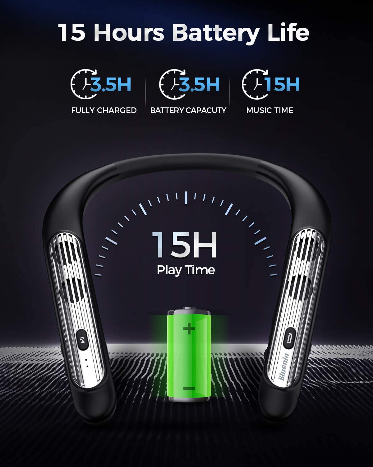 Bluetooth Speaker Bluenin Portable Bluetooth Speakers Wearable Neckband Bluetooth Speakers, Wireless Collar Speaker CVC 8.0 Noise Cancelling 3D Sound Personal Sport Speaker with Mic(Black)