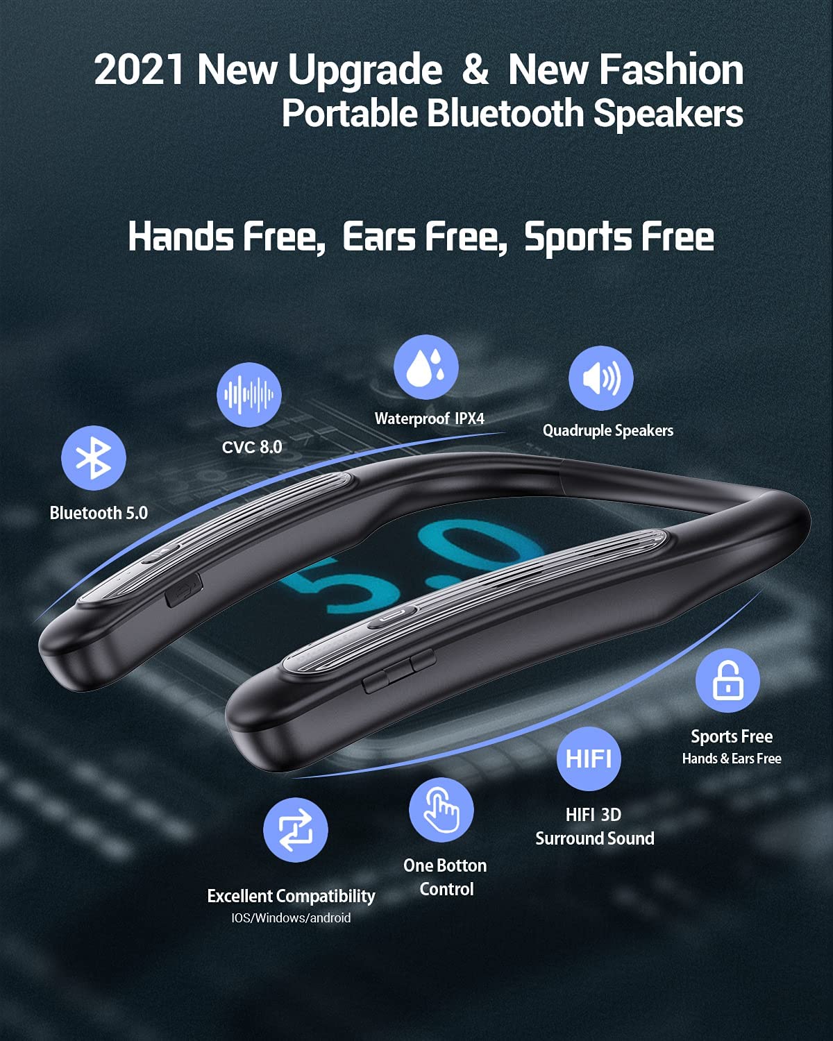 Bluetooth Speaker Bluenin Portable Bluetooth Speakers Wearable Neckband Bluetooth Speakers, Wireless Collar Speaker CVC 8.0 Noise Cancelling 3D Sound Personal Sport Speaker with Mic(Black) Rated 4.41 out of 5$27.99 -