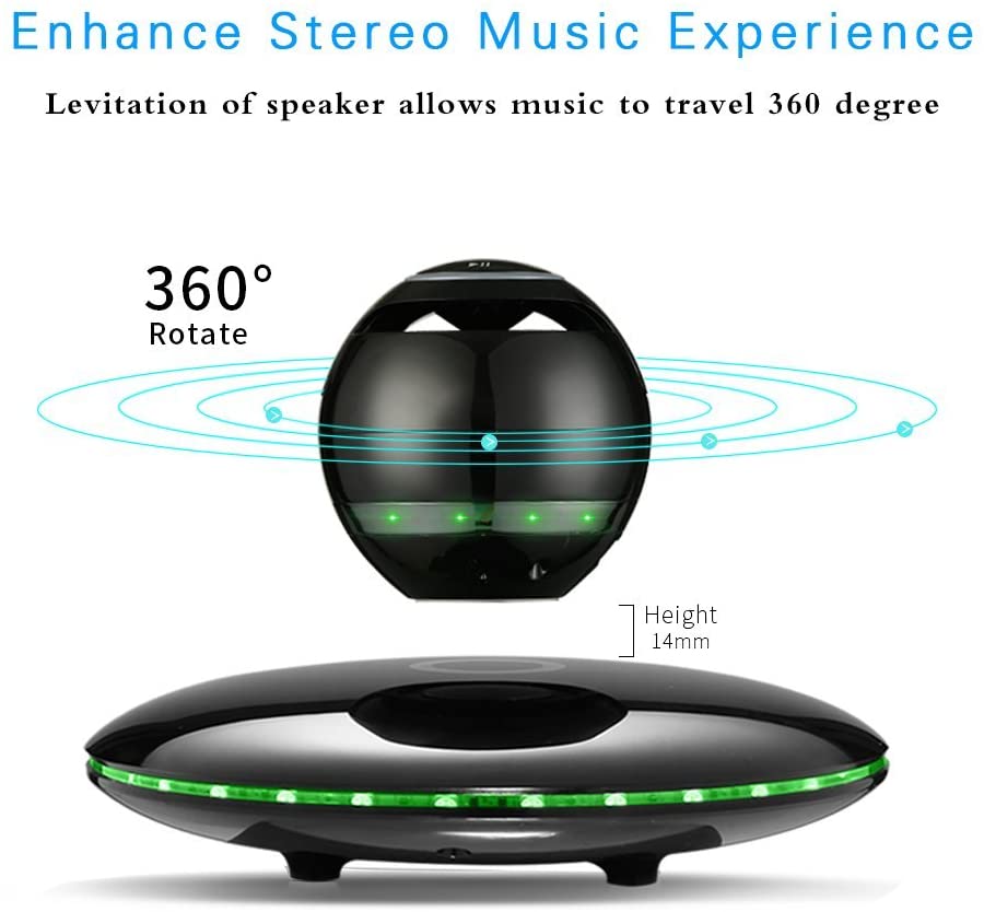 Infinity Orb levitating speaker is not only a unique designed levitating Bluetooth speaker, but also a beautiful piece of artwork. The Infinity Orb levitates in air at 1/2inch height above its magnetic base. The base illuminates continuously different color LED lights. Play music up to 8 hours at 70% volume. It is an awesome high tech gadget and it is also a perfect gift to friends.