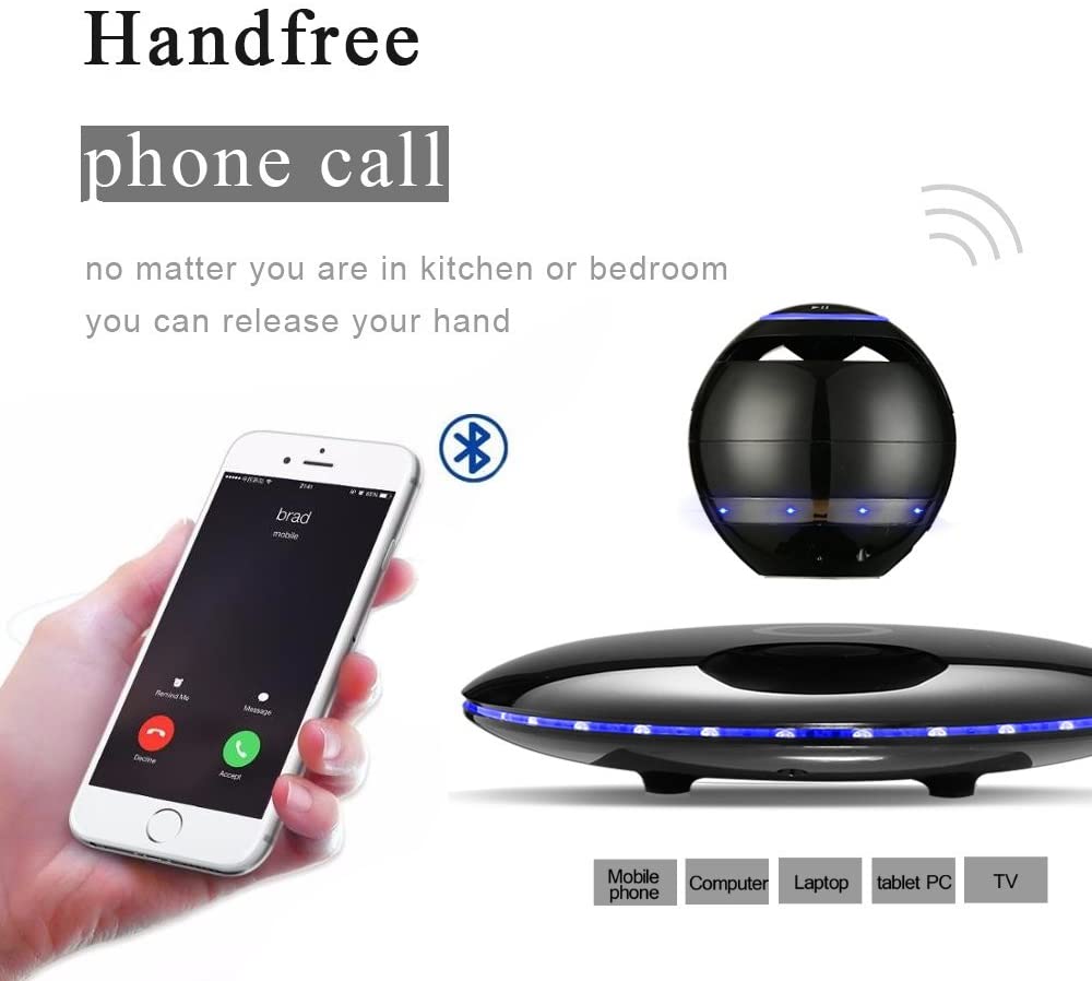 Infinity Orb Magnetic Levitating Speaker Bluetooth 4.0 LED Flash Wireless Floating Speakers with Microphone and Touch Buttons (Black)