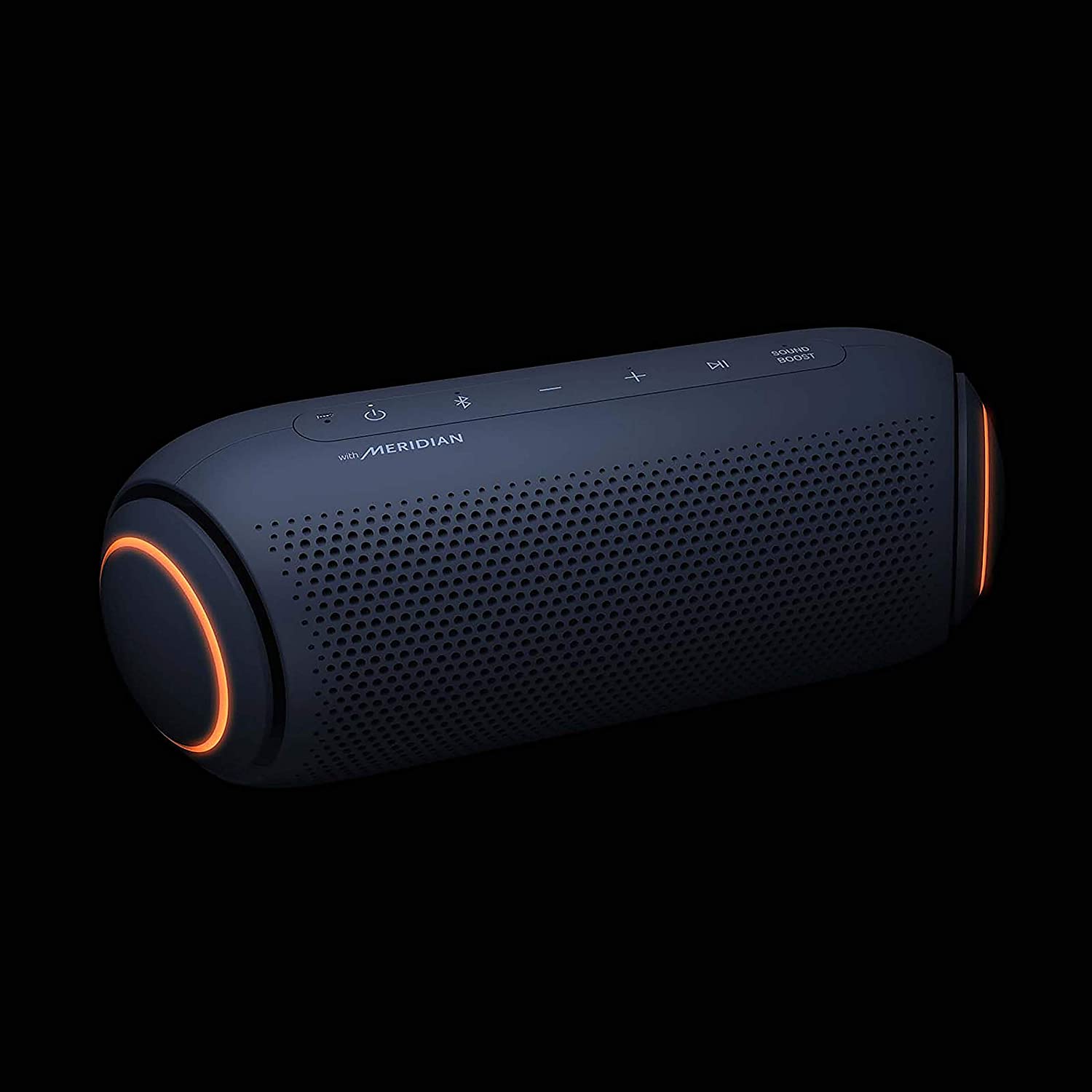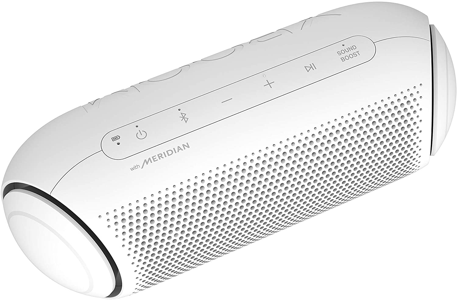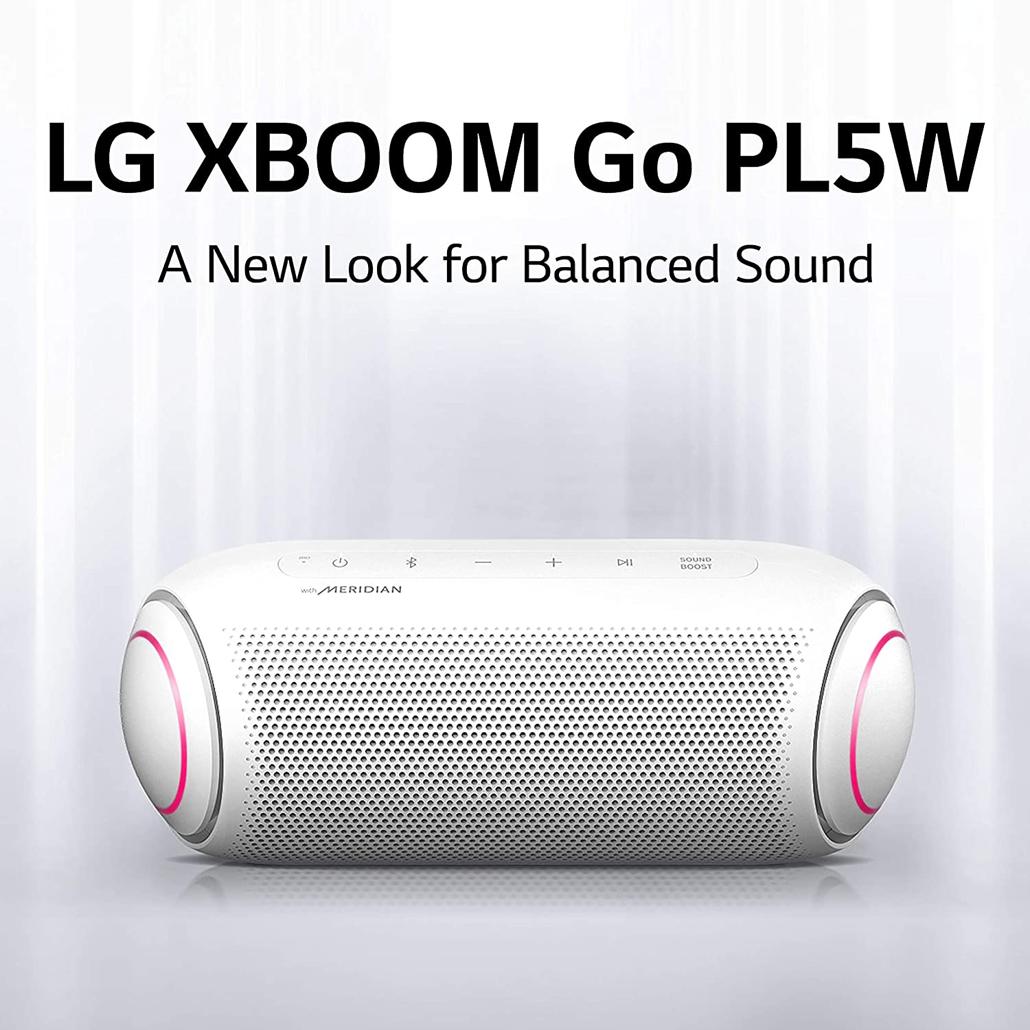 - A The small, sleek body of the LG XBOOM Go packs a big punch with 20 watts of power and stereophonic sound. With Meridian audio technology and dual passive radiators, you get one powerful speaker that couldn't be easier to pack with you. ^Daphane