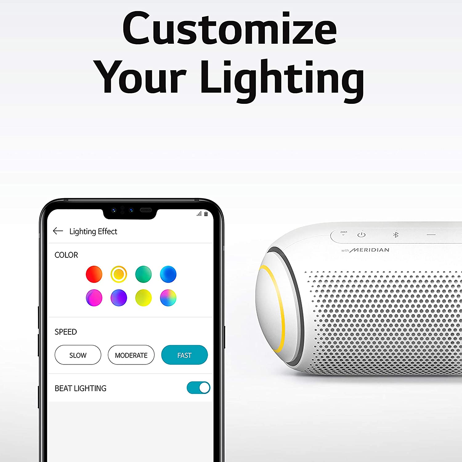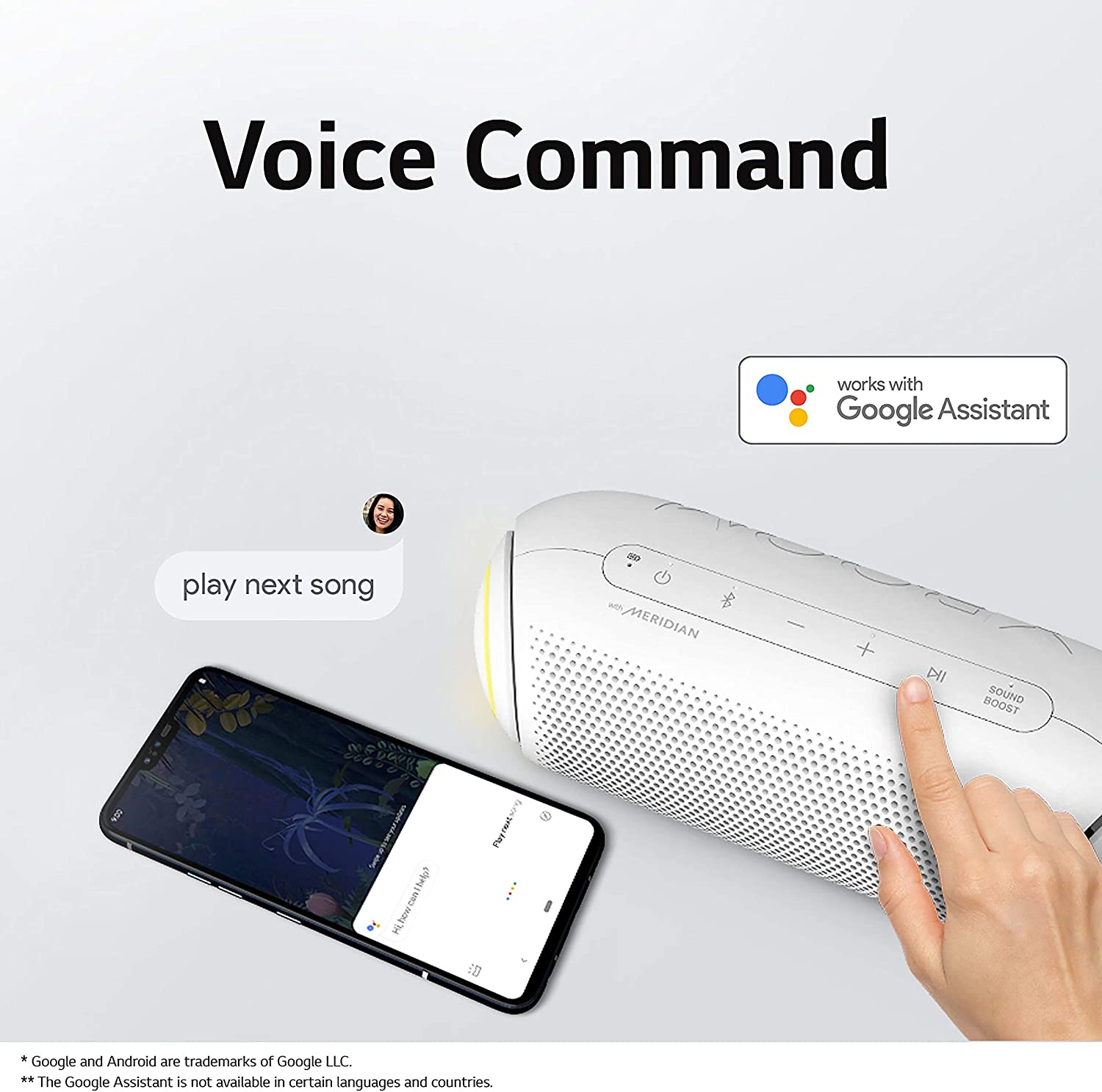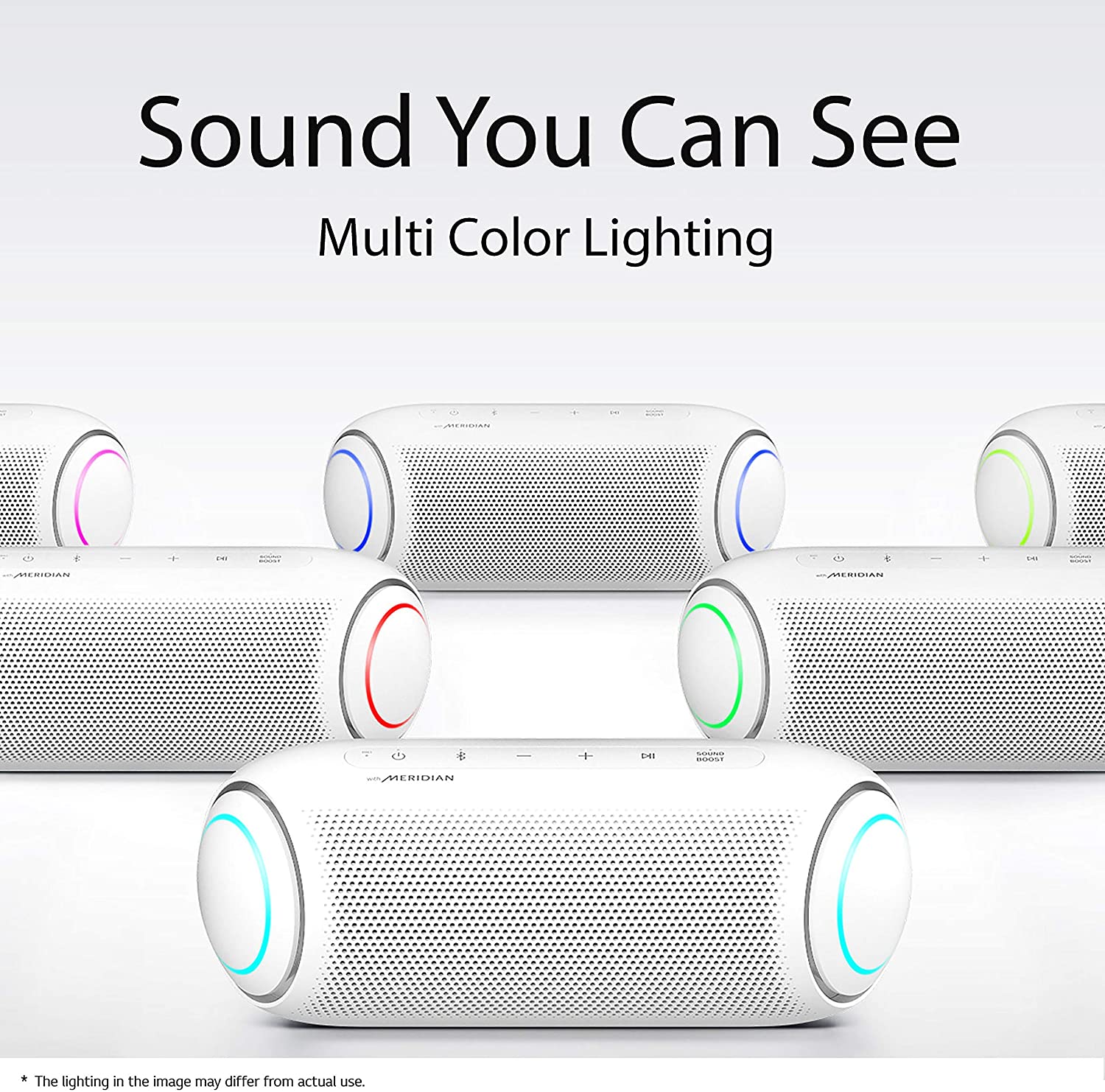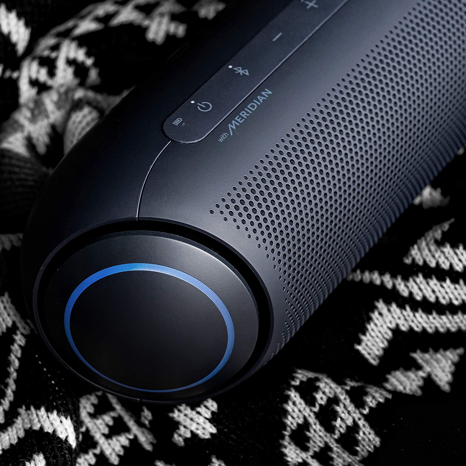 - A The small, sleek body of the LG XBOOM Go packs a big punch with 20 watts of power and stereophonic sound. With Meridian audio technology and dual passive radiators, you get one powerful speaker that couldn't be easier to pack with you. ^Daphane