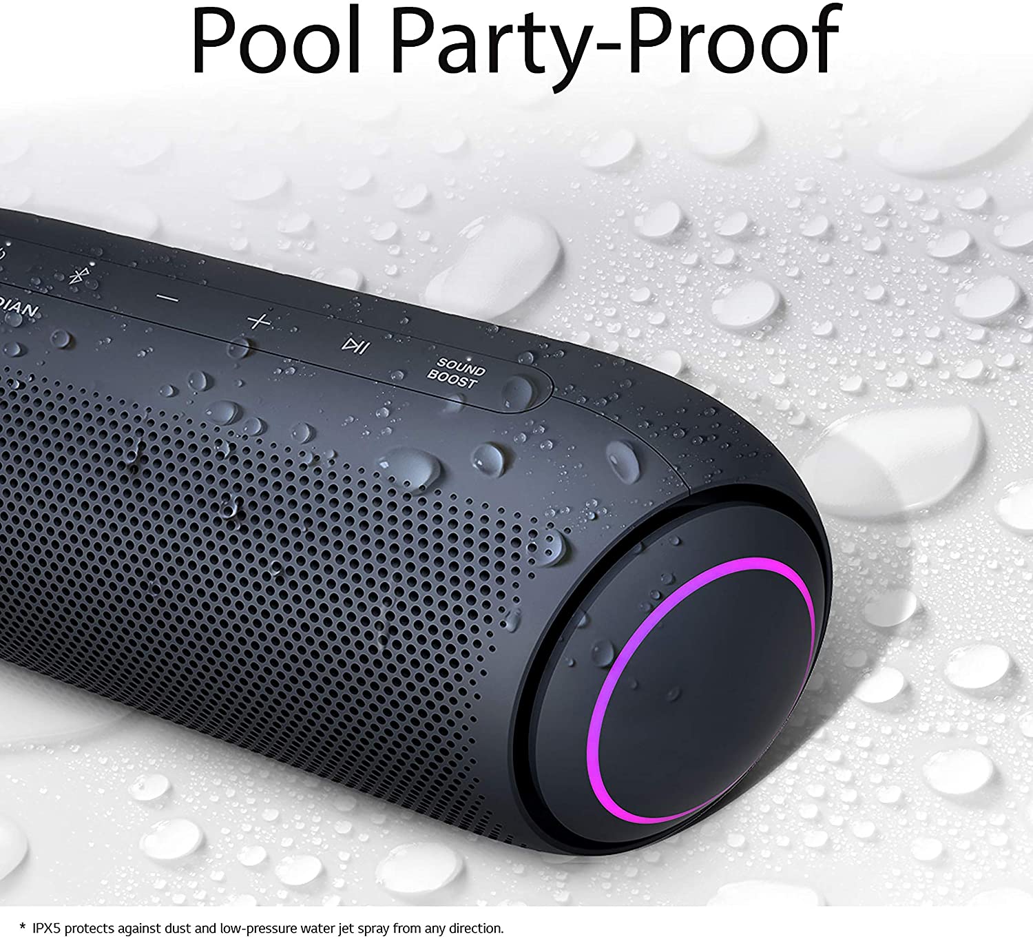LG XBOOM Go Speaker PL5 Portable Wireless Bluetooth, Dual Action Bass, Sound by Meridian, Water-Resistant, Sound Boost EQ, 18 Hour Battery Life, LED Lighting – Black