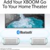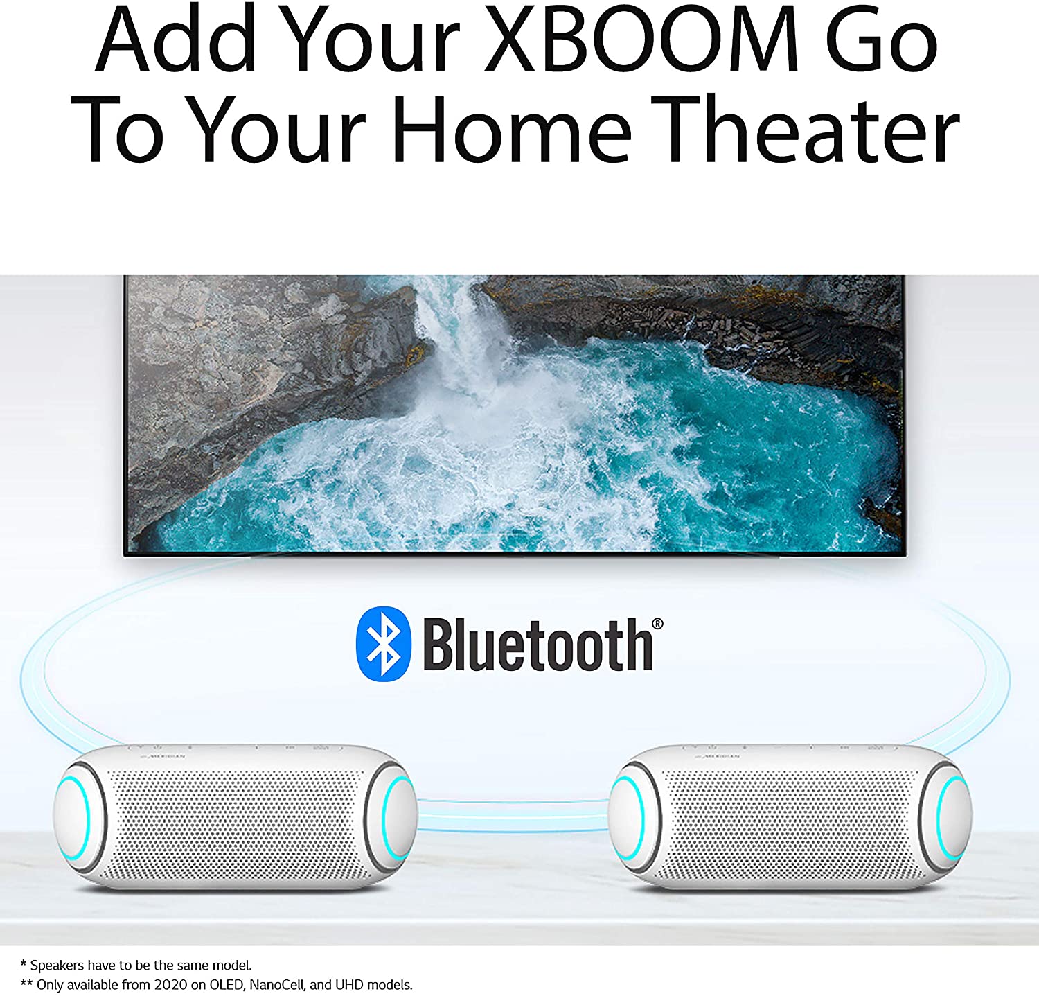 - A Yes, you can add your LG XBOOM Go to your home theater. The portable Bluetooth speaker easily connects to compatible LG TVs to add rear stereo or surround sound to all your favorite sports, movies and TV shows. ^Daphane