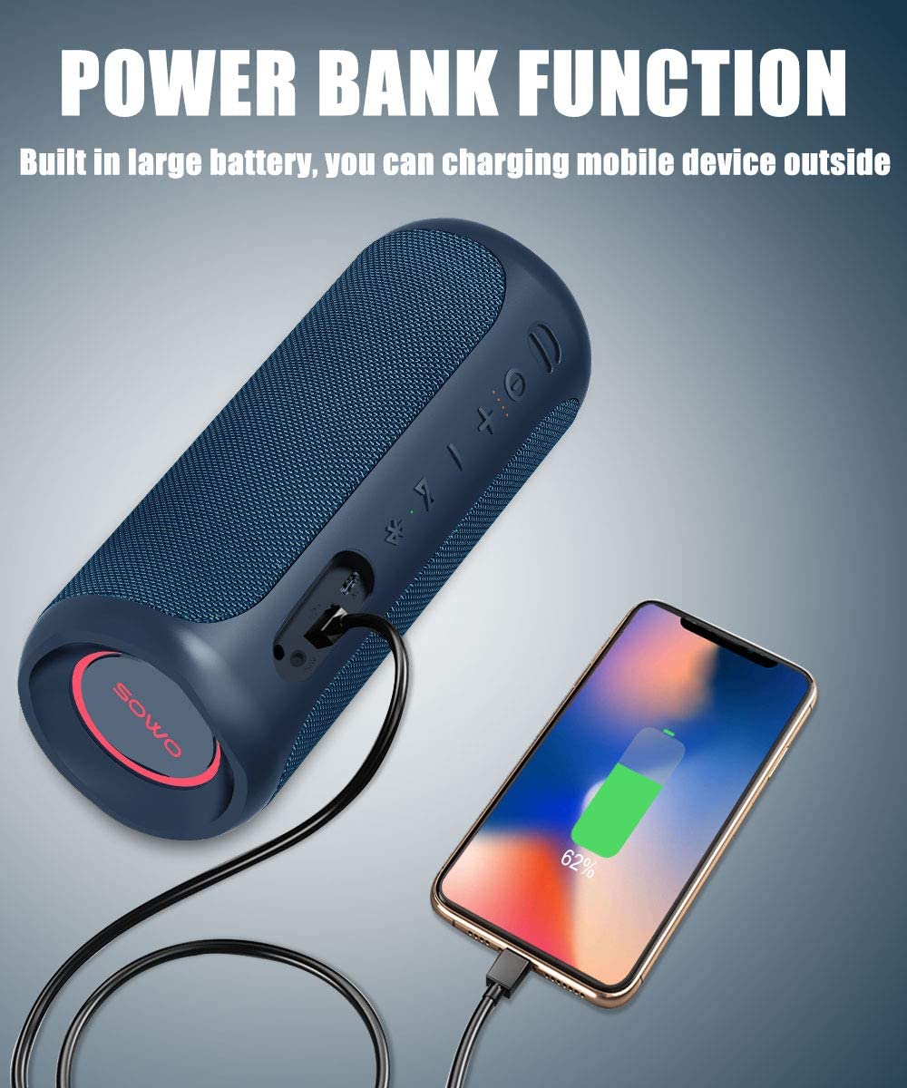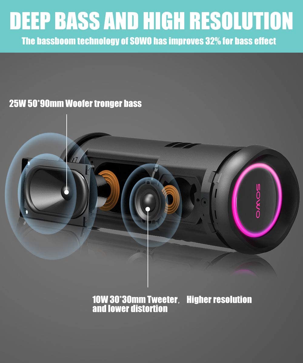 Portable Bluetooth Speaker with Subwoofer, 35W Bass Loud Speaker with Power Bank, IPX7 Waterproof, Wireless Stereo Pairing, 24H Playtime, Speaker with Lights for Outdoor Party, Camping – Black