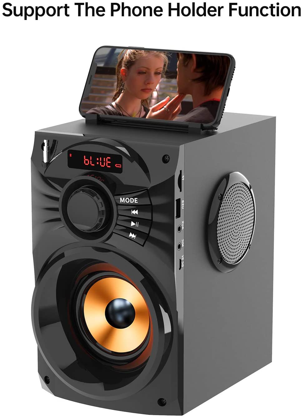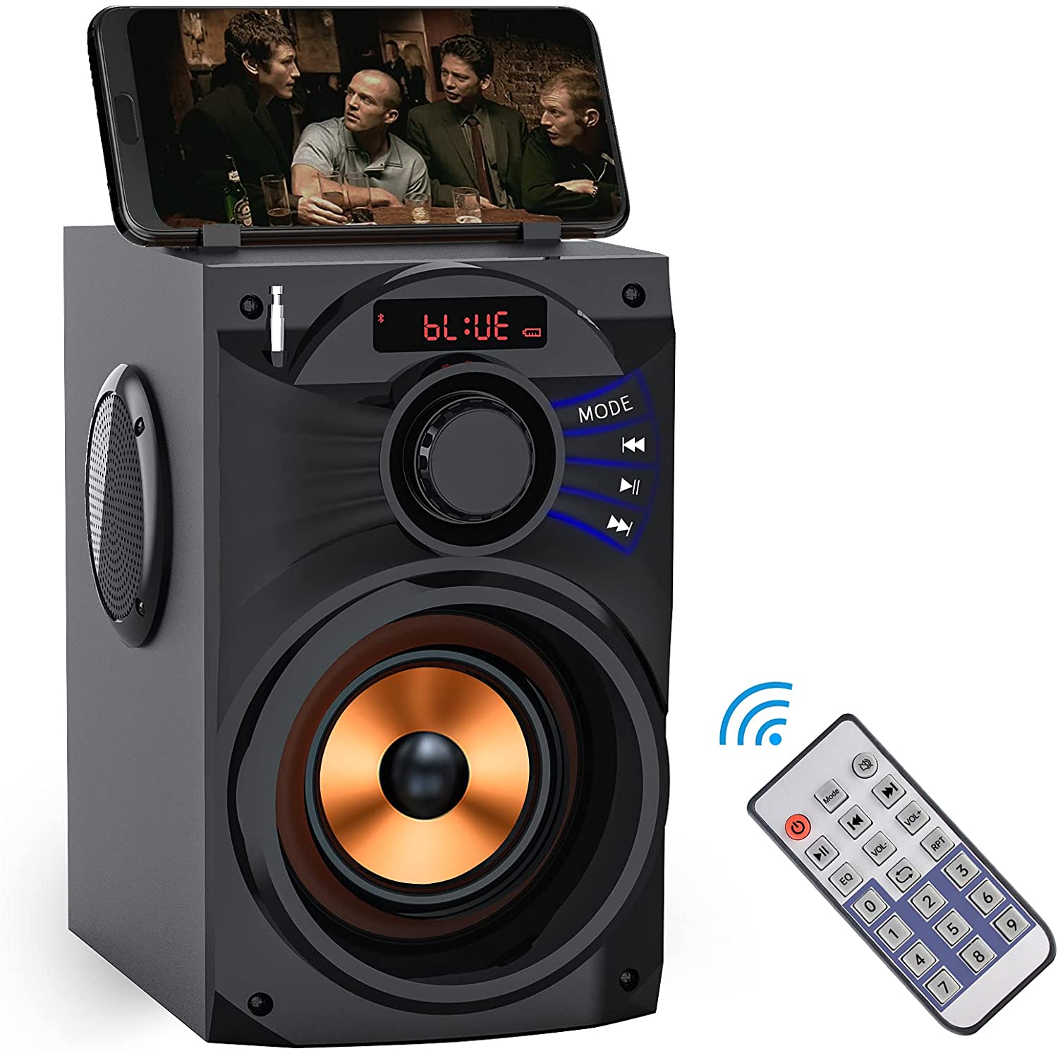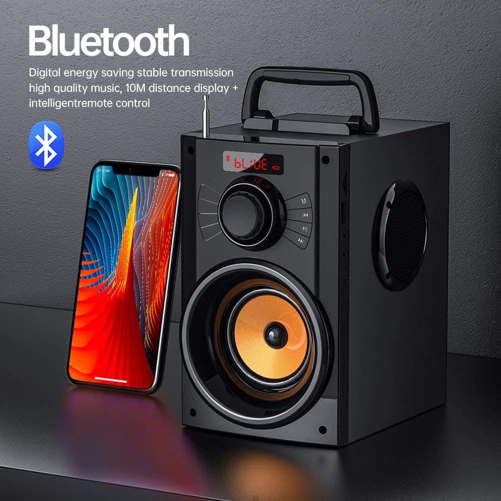 - A This speaker is a great buy! Bluetooth speaker, built-in Bluetooth 4.2 wireless transmission, working distance up to 10 metersпјЊIt is lightweight, making it very portable. The sound is clear and louder than you would expect. It has a place for the remote on top and also acts as a kick stand for your phone. You can connect different devices too.