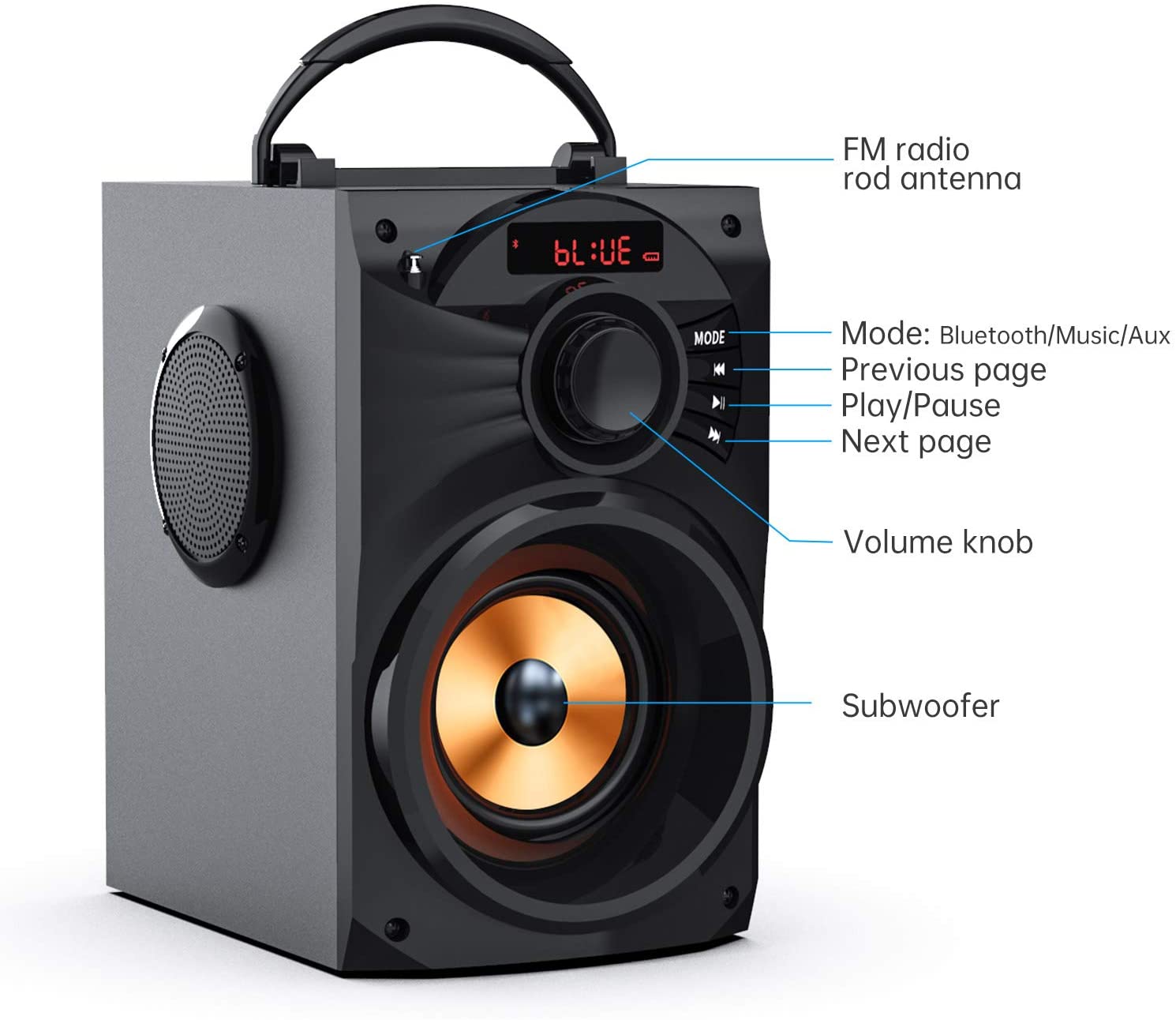 - A Portable Bluetooth Speaker with SubwooferпјЊThis is a great speaker. Smaller than expected but it has loud, clear sound. I purchased so that I can have audio in other parts of the house without having to move my soundbar and subwoofer around.